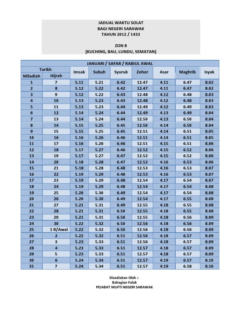 Waktu Solat Kuching Bau Lundu Sematan 2014 Pdf